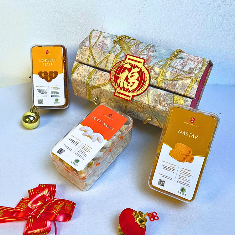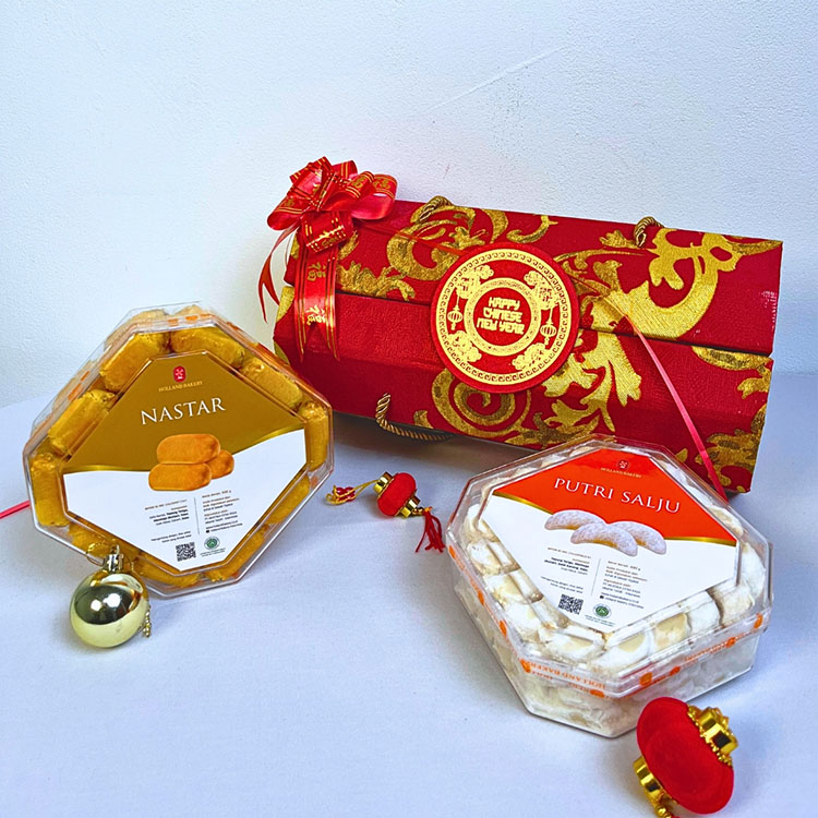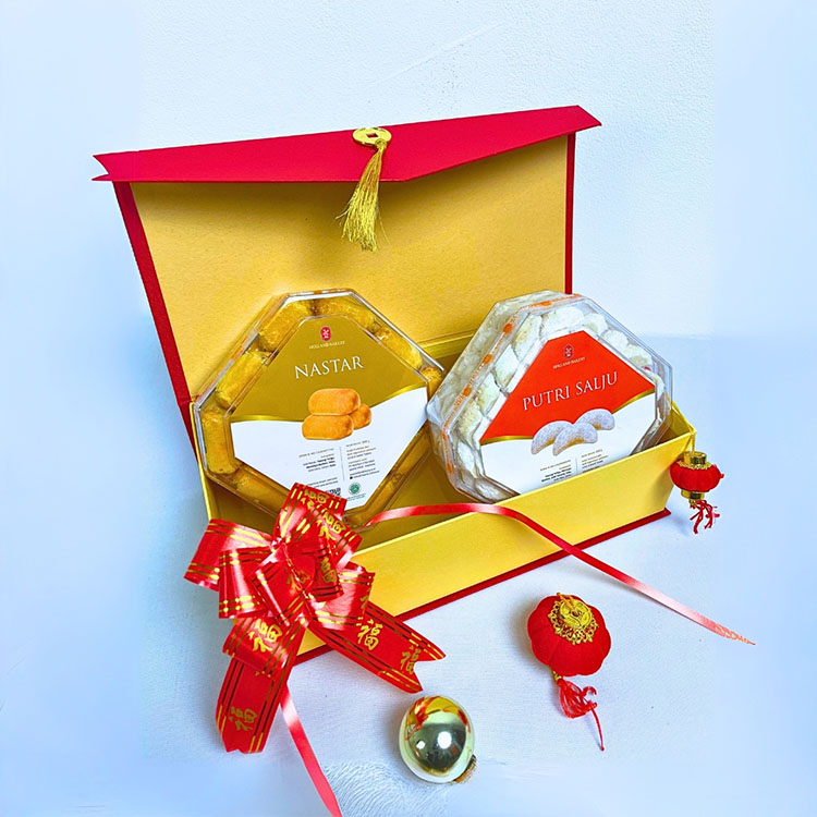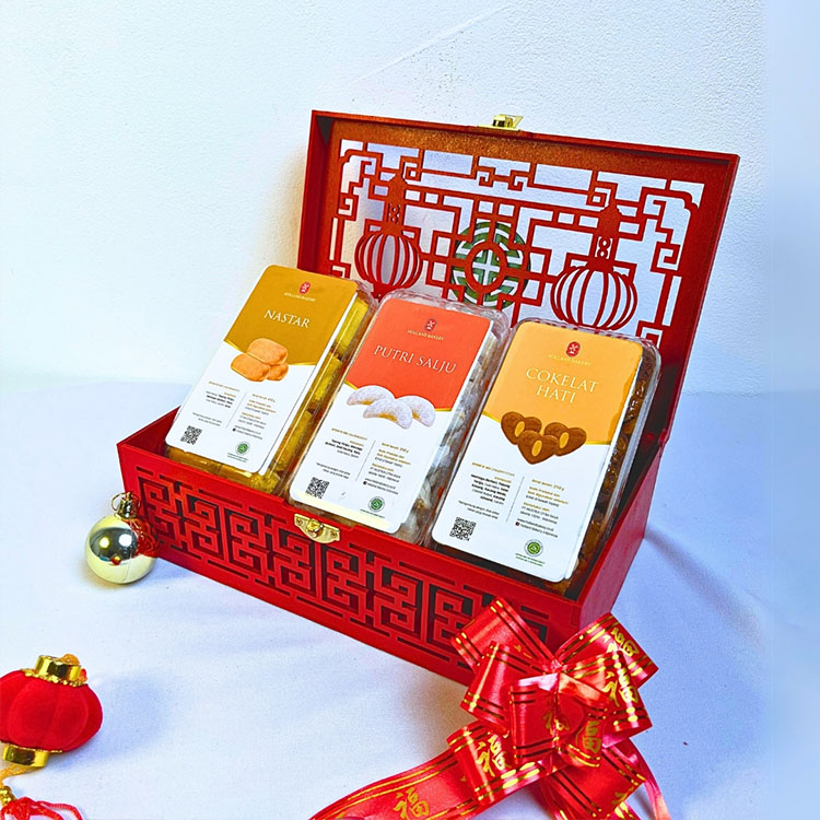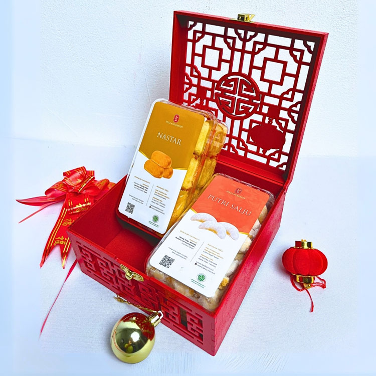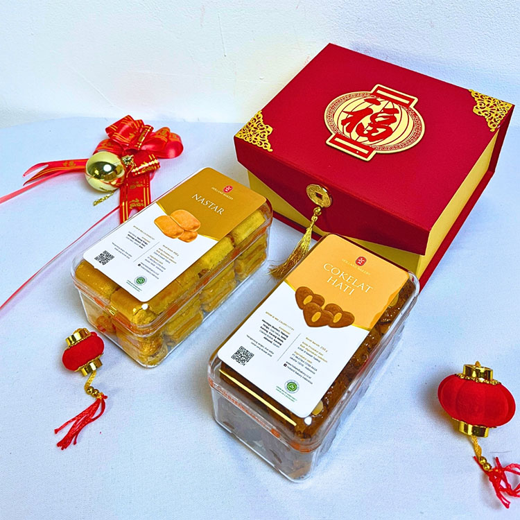 Aneka Kue Kering yang Dikemas Elegan di Dalam Box Dengan Nuansa Imlek